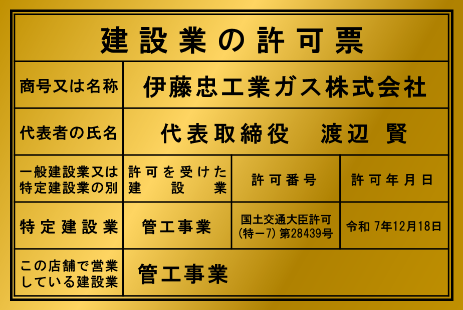 当社は特定建設業許可(管工事業) 国土交通大臣許可(特-7)第 28439 号を取得し、法令に基づく体制のもとで適正な施工を行っています。